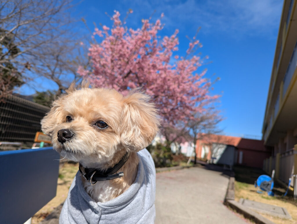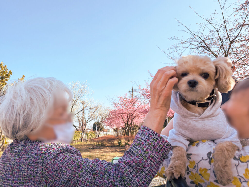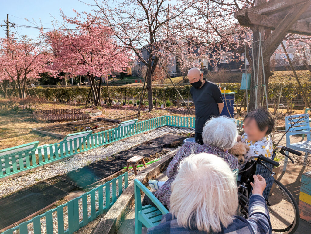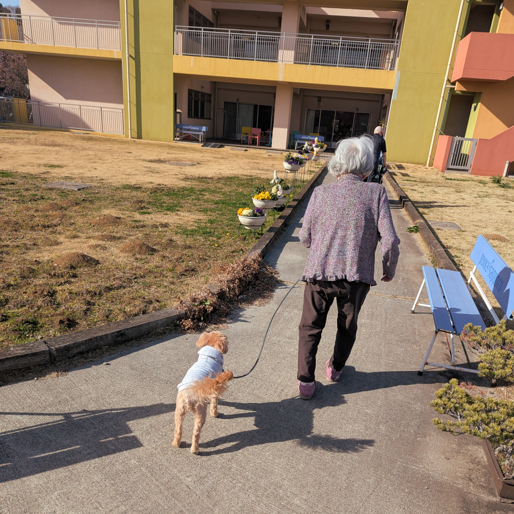 🌸施設庭園で、お花見散歩🌸 2026.03.02 2月末の暖かい日に、みなさまと一緒に施設庭園の河津桜を見てきました! 施設のマスコット犬「れん君」も連れて、一足早い春を感じていただきました。 これからの暖かい季節には、外気浴も兼ねたお散歩を行ってまいります! お天気がいい日のご面会の際にも、ぜひ施設庭園をご覧ください。 令和8年3月2日作成 ル・リアンふかみ 1階ユニット職員・広報